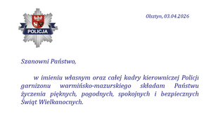 Życzenia świąteczne Komendanta Powiatowego Policji w Braniewie Dodano: 03.04.2026