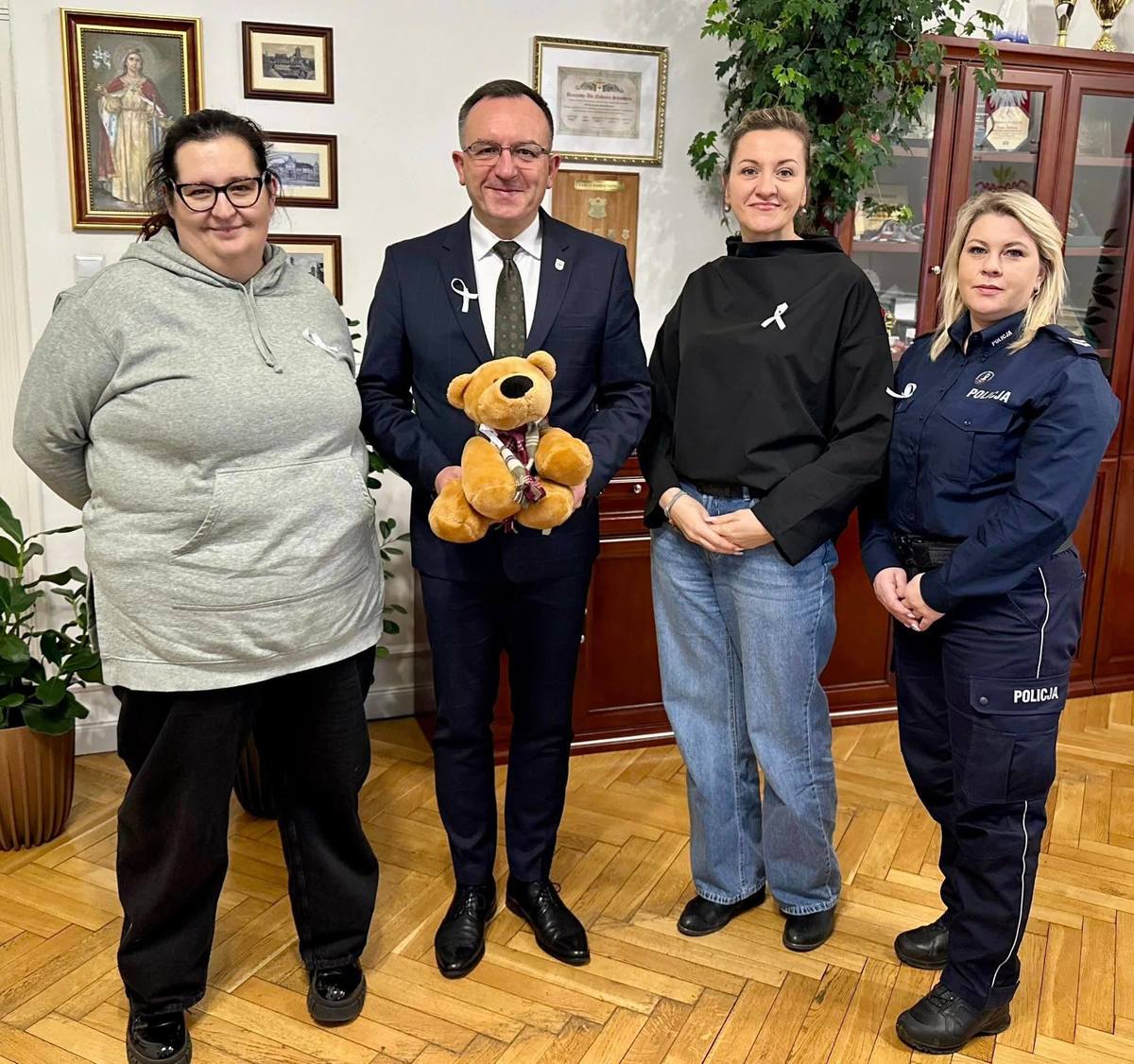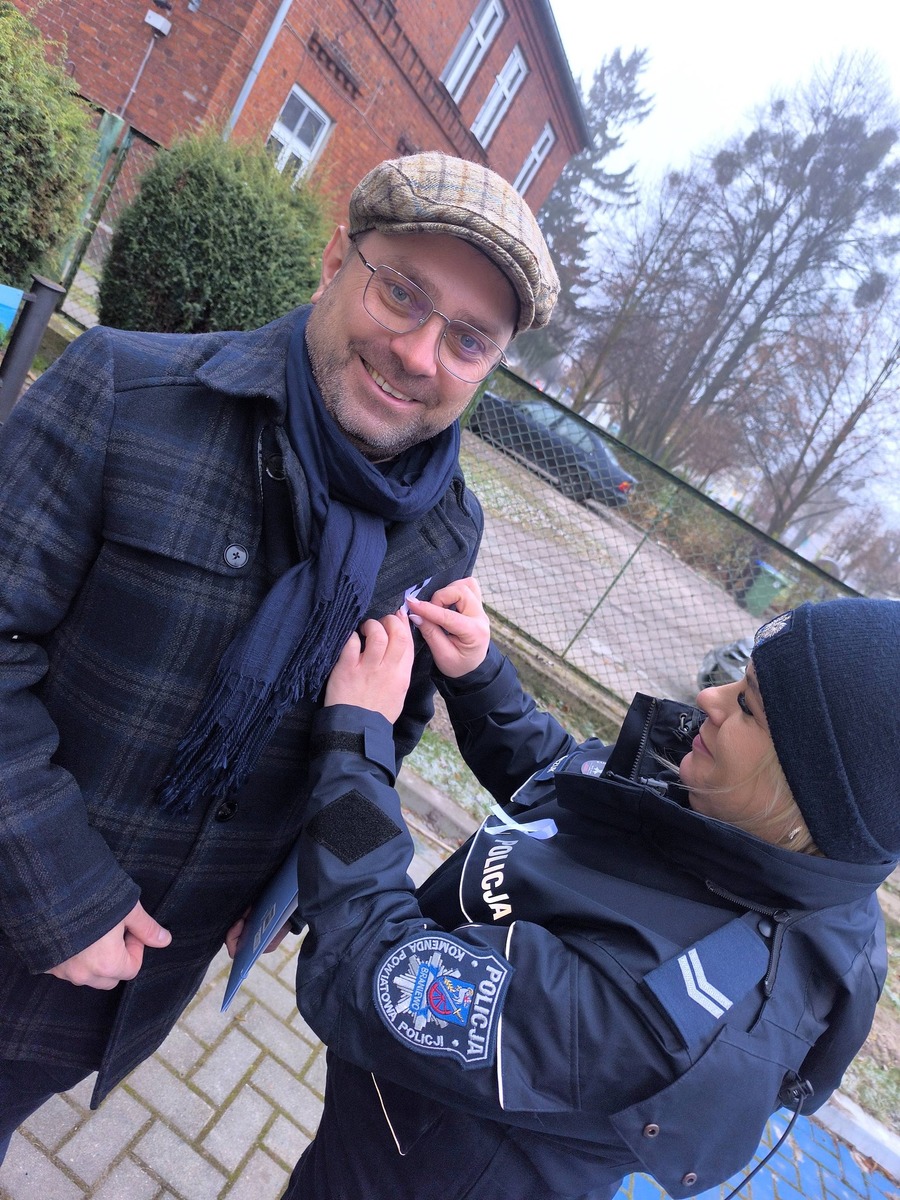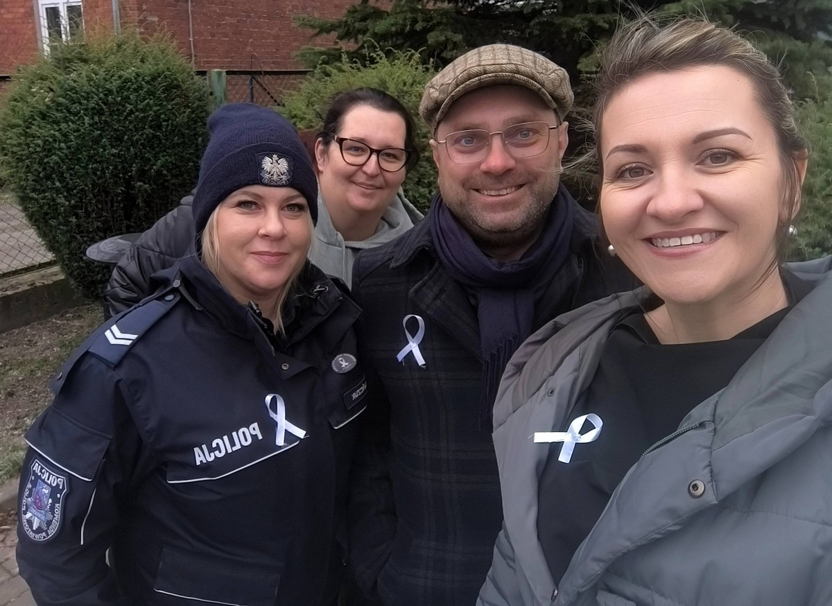 Podczas dzisiejszych działań policjantka wraz z przewodniczącą Miejskiego Zespołu Interdyscyplinarnego i pedagogiem z LO im. Feliksa Nowowiejskiego wręczała i przypinała mężczyznom białe wstążki – symbol wsparcia, szacunku, sprzeciwu wobec przemocy i solidarności z osobami, które jej doświadczają.To drobny gest, ale o ważnym znaczeniu: przypomina, że reagowanie ma sens, a brak zgody na przemoc zaczyna się od każdego z nas. Każdy z nas może się zaangażować w budowanie świata wolnego od przemocy.
