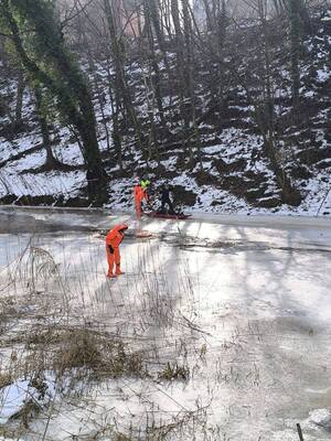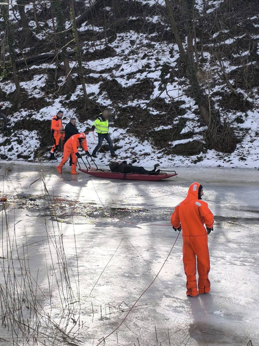 Pomimo bardzo niebezpiecznych warunków, związanych z częściowo zamarzniętą rzeką oraz załamującym się lodem, obaj mężczyźni, ryzykując własne życie i zdrowie, położyli się na powierzchni lodu i próbowali podać tonącemu 5 metrową żerdź. Jednemu mężczyźnie udało się chwycił tonącego za odzież, jednak w tym momencie lód ponownie się załamał i obaj wpadli do wody.