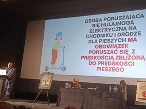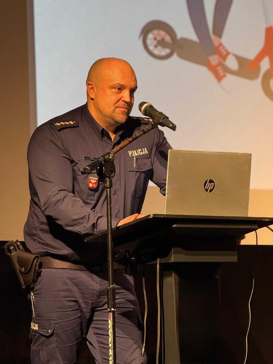 Jednym z prelegentów był asp.szt. Robert Kot z braniewskiej komendy, który na co dzień zajmuje się zagadnieniami prewencji kryminalnej, sprawami nieletnich oraz przeciwdziałaniem patologiom społecznym. Podczas swojego wystąpienia omówił rolę Policji w systemie prawnym wobec osób nieletnich, zwracając szczególną uwagę zarówno na kwestie odpowiedzialności, jak i możliwości wsparcia młodych ludzi. Poruszył również temat hulajnóg elektrycznych - przedstawił obowiązujące przepisy, zasady korzystania z nich, a także zwrócił uwagę na to, jakie zachowania są zabronione i jakie konsekwencje prawne mogą z tego wynikać.