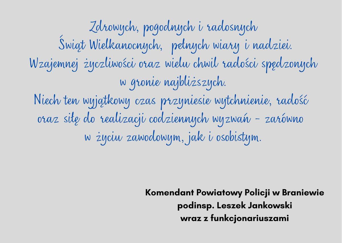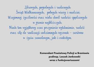 Życzenia świąteczne Komendanta Powiatowego Policji w Braniewie